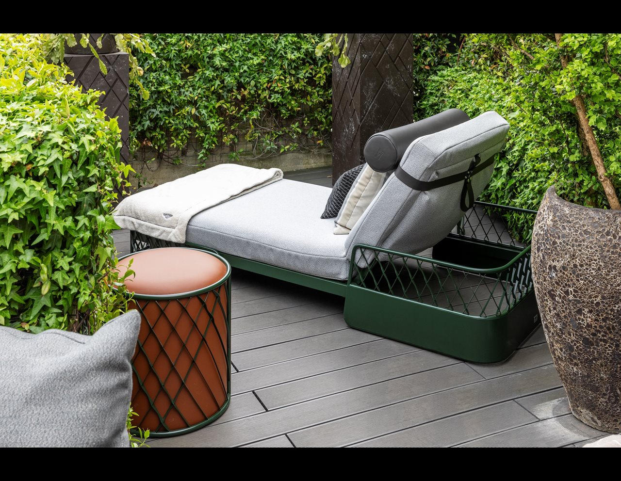 Conceived by renowned Bentley Home designer, Carlo Colombo, alongside the Bentley Motors design team, the outdoor furniture range includes a sofa, sunbed, armchair, pouffe, coffee and side table. Each piece features the iconic Bentley matrix grille, reminiscent of Bentley’s car designs. The collection introduces two refined, new finishes: rich, matte, lacquer in a choice of Forest Green or Burnt Orange – to complement the Hyde picnic set. The bold, nature-inspired tones highlight the contrast between the structural elements of the designs and the soft volumes of the upholstery. The new leather and natural fabric offering provides unique levels of extreme comfort and craft that the Bentley customer is accustomed to.