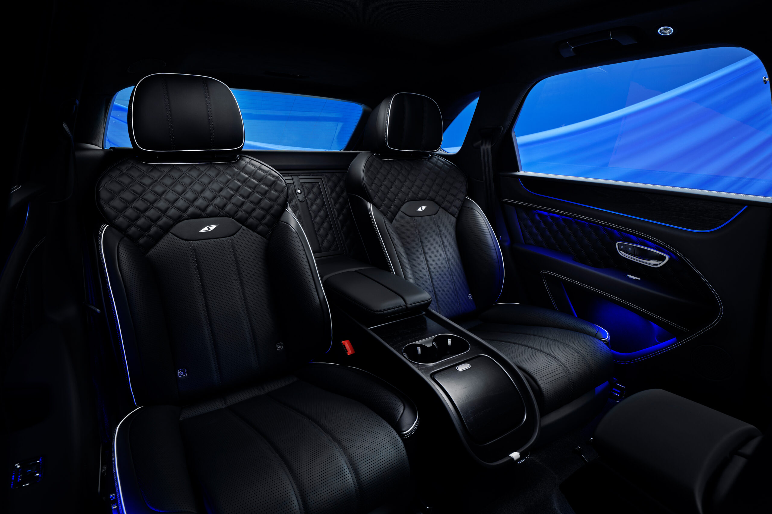 To showcase Nīla Blue, Supriya co-created a one-of-one specification, working with Mulliner designers to explore the possibilities of personalisation through bespoke finishes. A bespoke Bentayga S provides a stunning canvas, to display the uniquely commissioned Nila Blue. The lower brightware has been matched with the rest of the exterior paintwork and using the freshly commissioned blue, a pinstripe has been added to the 22” sports style wheels. A bright Mulliner White accent to the carbon fibre bodykit provides a contrast that is echoed through to the interior. The interior includes a multitude of bespoke features, from the satin black Naim audio speaker grilles to the open pore black stained crown cut walnut veneers, all bordered by the Nila Blue edging. This exclusive edition embodies the bold and elevated confidence that defines Lele’s fashion work, featuring luxurious and experimental fabrication that evolves the fluid silhouettes synonymous with her label.