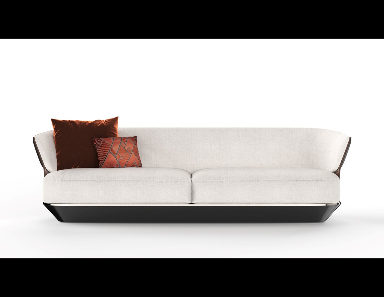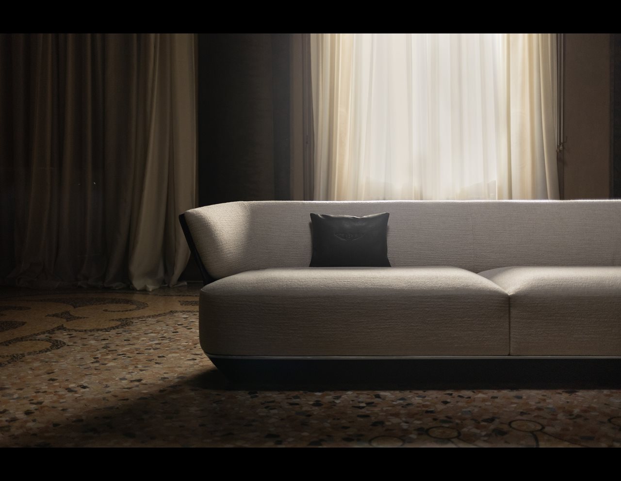 Among the key pieces, the Embrace armchair distils the same language into a more compact piece, defined by a protective, curved outer shell and a subtle interplay between leather and upholstery. Its reduced scale and controlled geometry reflect the brand’s move towards lighter, more versatile interiors.